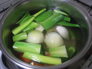 Após os 40 minutos, os legumes estarão cozidos e o caldo bem saboroso e perfumado. Coar o caldo.