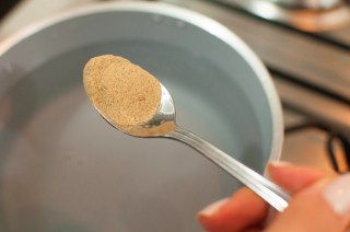 Colocar a água para ferver com o pó de iriko.