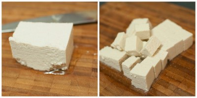 Acrescentar o tofu cortado em cubinhos, deixando mais 1 minuto.